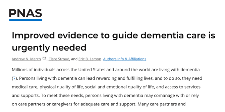 A new publication co-authored by IMPACT member Eric Larson, MD, MPH, reflects on the importance of non-pharmacological interventions that promote the wellbeing of people living with dementia and their care partners as integral to dementia care. Authors comment on the contributions made by IMPACT Collaboratory on insights into real-world implementation of dementia care interventions through multiple mechanisms. The article emphasizes the need for comprehensive dementia care beyond pharmaceutical solutions, considering patients, caregivers, and care partners.